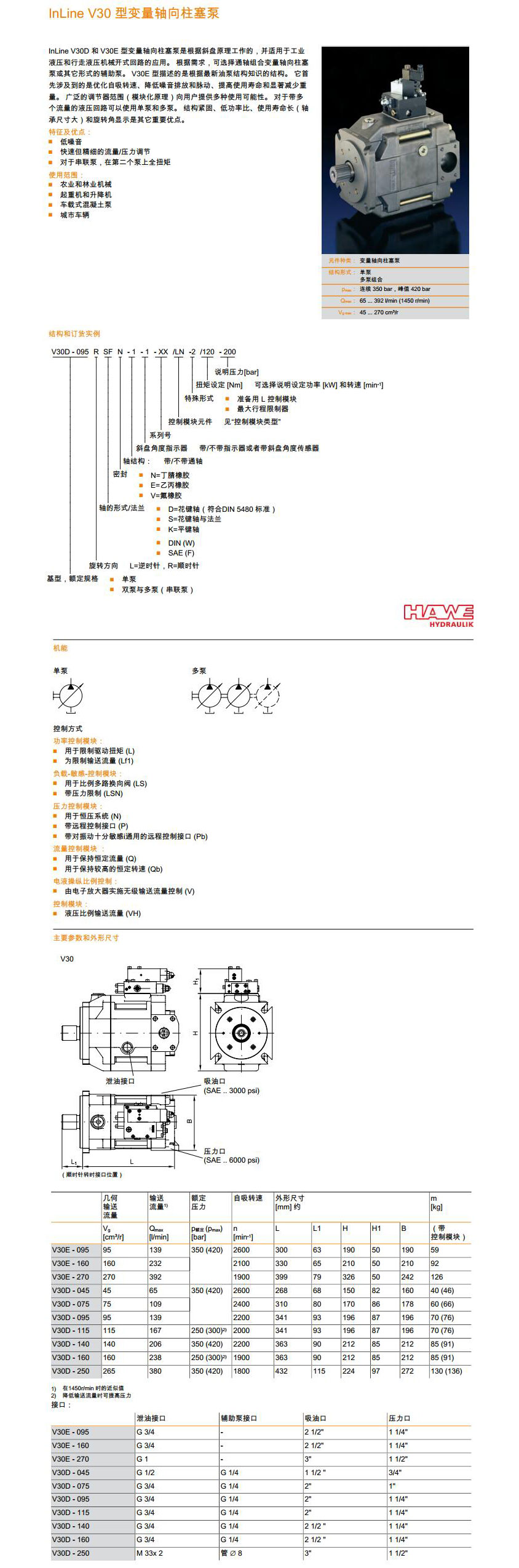 V30E 型变量轴向柱塞泵