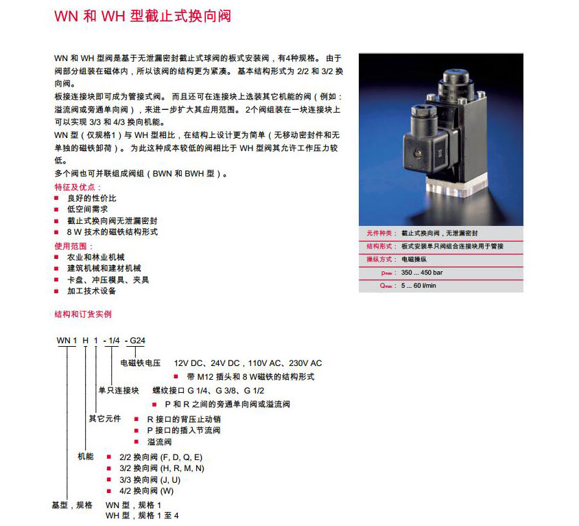 WN和WH型截止式换向阀